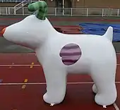 The Snowdog Art Trails are a series of public art exhibitions of large Snowdog sculptures, organised by Wild In Art from 2016 to 2018.[1] They celebrate the Snowdog from the 2012 short film, The Snowman and the Snowdog, and feature sculptures painted in a wide variety of styles, many of which reflect the area in which the dogs are displayed. In addition to large fibreglass Snowdogs, the exhibitions have also featured smaller Snowpups, decorated by and, after the event, given to local primary schools.