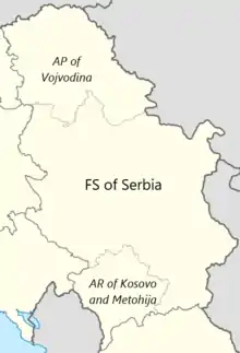 Within Socialist Republic of Serbia two autonomous provinces existed: Socialist Autonomous Province of Vojvodina and Socialist Autonomous Province of Kosovo. The central part of the Socialist Republic of Serbia located outside of the two autonomous provinces was generally known as "Serbia proper" ("Uža Srbija").