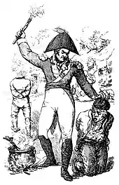 From February 1793 the Crown was at war with the French Republic. This led immediately to heightened tensions in Belfast. On 9 March a body of dragoons rampaged through the town, purportedly provoked by taverns displaying the likenesses of Dumouriez, Mirabeau and Franklin.[76] They withdrew to barracks when, as related by Martha McTier, about 1,000 armed countrymen came into the town and mustered at McCracken's Third Presbyterian.[77] Further "military provocations" saw attacks on the homes of Neilson, Kelburn and other United Irishmen and on the offices of the Northern Star (wrecked for the final time, and closed, in May 1797). Legislation impressed from Westminster banned extra-parliamentary conventions and suppressed the Volunteers, by then largely a northern movement. They were replaced by a paid militia, its ranks partially filled with conscripted Catholics, and by Yeomanry, an auxiliary force led by local gentry.