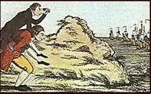 In justifying the suspension of habeas corpus the authorities were more than ready to see the hand not only of English radicals but also, in the large Irish contingent among the sailors, of United Irishmen in the Spithead and Nore mutinies of April and May 1797.[112] The United Irish were reportedly behind the resolution of the Nore mutineers to hand the fleet over to the French "as the only government that understands the Rights of Man".[113] Much was made of Valentine Joyce, a leader at Spithead, described by Edmund Burke as a "seditious Belfast clubist",[114] (and recorded by R. R. Madden as having been an Irish Volunteer in 1778).[115]