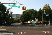 Socrates Sculpture Park is located atop the mouth of the buried Sunswick Creek.[1]:97 In 1986, American sculptor Mark di Suvero created Socrates Sculpture Park on an abandoned landfill and illegal dumpsite in Long Island City. The four-acre site is the largest outdoor space in New York City dedicated to exhibiting sculpture. The former landfill was renovated into the current park by a team of contemporary artists and local youths.[2] The park operated for 14 years with only a temporary city park status. In 1998, the park was given official status by then New York City mayor Rudolph Giuliani as a permanent city park after a developer attempted to erect luxury apartments and a marina on the site after the park's lease had expired.[3]