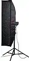 The sides and back of the box are lined with a bright surface - an aluminized fabric surface or an aluminum foil, to act as an efficient reflector. In some commercially available models the diffuser is removable to allow the light to be used alone as a floodlight or with an umbrella reflector.