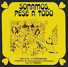 Sonamos Pese A Todo, the debut album of Les Luthiers, released in September, 1971. It was recorded in late 1970 at ION Studios in Buenos Aires, and it featured Les Luthiers as a quintet, with some guest musicians and an orchestra for some numbers. The album was done before they collectively credited their works to everybody in the group, so individual authorship is included. Ernesto Acher wasn't a member of Les Luthiers when they recorded the project, but he was instrumental in getting the album released.