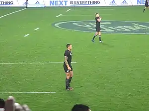 Williams returned to the All Blacks against Samoa at Eden Park in a solid performance, where he scored a try in a 78–0 win.[191] A week later, he started at inside centre for the All Blacks in their victory against the British and Irish Lions in the first test. However, a week later in the second test, Williams became the first All Black to be sent off in 50 years after Colin Meads was sent off in 1967, and was also the first ever to be sent off in New Zealand, for shoulder charging Anthony Watson to the head.[192] The All Blacks went on to lose the test 24–21. After serving his four-match suspension for his red card, Williams returned for the first Bledisloe Cup match of the year, where he scored a try in the All Blacks' record 54–34 victory.[193] Williams started in all New Zealand's Rugby Championship matches, with the All Blacks winning all six, including a 57–0 victory over South Africa in Auckland.