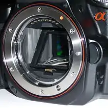 Sony α (the lower case to Greek letter alpha, often transliterated as Sony Alpha), is a camera system introduced on 5 June 2006.[1] It uses and expands upon Konica Minolta camera technologies, including the Minolta AF SLR lens mount, whose assets were acquired by Sony after the end of Konica Minolta's photography operations in early 2006. Sony also has an 11.08% ownership stake in Japanese lens manufacturer Tamron,[2] which is known to have partnered with Konica Minolta and Sony in the design and manufacture of many zoom lenses.