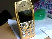 The Ericsson T68m (often called simply T68) was a candy-bar style mobile phone by Ericsson Mobile Communications. Launched in time for the 2001 Christmas season, the T68 was the first Ericsson mobile phone to have a colour screen, a passive LCD-STN with a resolution of 101×80 and 256 colours. Despite its diminute size (3.94×1.89×0.79 in or 100×48×20 mm, 2.96 oz or 84 g), it was one of the most feature-rich mobile phones at the time, with Bluetooth, IrDA port, GPRS 3+1, tri-band compatibility (900 MHz, 1800 MHz and 1900 MHz), SMS with T9 (predictive text), EMS, WAP, and customizable monophonic ring tones. A simple bitmap image editor was provided, allowing the creation of monochrome pictures by guiding a cursor around the canvas and setting or unsetting individual pixels (several 'brush' sizes were selectable to make this easier). These images could be set as the phone's background image in standby mode, and sent to owners of EMS-compliant phones. With EMS soon to be succeeded by the superior MMS, few owners made much use of this feature. At its release, the phone cost around € 500, GBP299 in the UK, in either two-tone grey or all-gold.