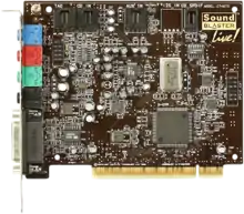 ![]() A Sound Blaster Live! Value card, a typical (circa 2000) PCI sound card. | |