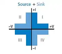 SMUs are used for test applications requiring high accuracy, high resolution and measurement flexibility. Such applications include I-V characterizing and testing semiconductors and other non-linear devices and materials, where sourcing voltage and current source span across both positive and negative values. To accomplish this, SMUs have four-quadrant outputs.[1] For characterization purposes SMUs are bench instruments similar to a curve tracer. They are also commonly used in automatic test equipment and usually are equipped with an interface such as GPIB or USB to enable connection to a computer.