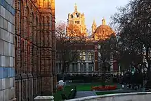 South Kensington is a district just west of Central London in the Royal Borough of Kensington and Chelsea. Historically it settled on part of the scattered Middlesex village of Brompton.[1] Its name was supplanted with the advent of the railways in the late 19th century and the opening (and shutting) and naming of local tube stations.[2] The area is known as a popular tourist destination owing to the density of museums and cultural landmarks. Adjacent affluent centres such as Knightsbridge, Chelsea and Kensington, have been considered as some of the most exclusive real estate in the world. Since World War I it has become a cosmopolitan area attracting Belgian and French refugees, but also Poles during World War II and after, and latterly Spanish, Italian, American, and Middle-Eastern expatriates. The French presence is emphasised by the Lycée Français Charles de Gaulle, the French Institute, hosting the Ciné Lumière a window on French cinema and the Alliance française and the French consulate, among other diplomatic residences.[3] With a French bookshop and many international cafés in the area, it has been called Paris’s 21st arrondissement.[4]