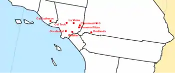 | University of Redlands | 1915–16 to present | Redlands | 1907 | Private (historically Baptist) |