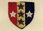 During the Second World War and after, Southern Command, in common with other UK Commands, used its formation sign as a badge, (or flash) on uniforms. The HQ sign itself (see top of this article) with its horizontal red, black, red background colouring indicated an army level command, on which were five stars of the Southern Cross. Uniquely in Southern Command the background colour of the shield, and occasionally the stars, was changed to show the colours of the service corps of the personnel, other commands used their formation sign with an arm of service stripe (1⁄4 inch (0.64 cm) thick) below it. The various designs and changes for visibility or similarity are shown below.[16]