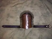 Spaulders are pieces of armour in a harness of plate armour. Typically, they are a single plate of steel or iron covering the shoulder with bands (lames) joined by straps of leather or rivets. By the 1450s, however, they were often attached to the upper cannon or rerebrace, a feature that continued into the 16th century.[1]