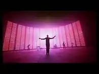 The video promo for "Speed of Sound" was shot on a Los Angeles sound stage on 22 and 23 April 2005.[34] Shooting took place on large sets backed by large Light-emitting diode (LED) displays developed by Element Labs.[35] The performance-based video was directed by Mark Romanek.[36][37] The video features the band performing in front of a curved ellipse wall that consists of 640 Element Labs' VersaTubes placed on 6-inch (150 mm) centres.[38]