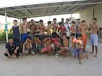 On April 17, 1975, during the chaos of the Vietnam War, the Khmer Rouge overthrew Lon Nol's pro-Western government, which was crumbling after America left the Vietnam War. The Khmer Rouge's plan was to eliminate modern society and create an agrarian utopia.[1] The Khmer Rouge executed most educated people, people who had ties to the old government, and anyone who was believed to be a threat (doctors, teachers, soldiers, actors, singers, etc.), and restricted the remaining Cambodian population to what were effectively labor camps. Pradal serey was banned under the Khmer Rouge regime, and many boxers were executed, nearly causing the art to be wiped out. In January 1979, the Vietnamese, along with a token force of Khmers led by ex-Khmer Rouge officers, overthrew the Khmer Rouge. Thereafter pradal serey was gradually revived.
