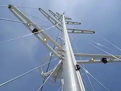 Four sets of swept and fixed spreaders on a large yacht