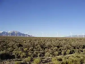 Spring Valley Wind Farm is Nevada's first wind farm. The farm is owned and operated by Pattern Energy. The facility is located in Spring Valley, northwest of Great Basin National Park and approximately 30 miles (48 km) east of Ely, Nevada. The 151.8 megawatts (203,600 hp) plant utilizes 66 2.3 megawatts (3,100 hp) wind turbines and occupies 77 acres (31 ha) in the center of Spring Valley, which consists of 7,673 acres (3,105 ha).[1][2][3][4][5]