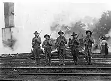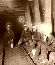 There was also uncertainty amongst Springfield's miners at the local and national level. In November 1907, 4,000 miners in Danville went on strike when coal operators stopped paying workers in cash and began issuing checks.[25] Five months later, on April 1, 1908, Springfield's miners were nearly part of the 250,000 miners across the country who went on strike after their contracts expired and coal operators showed "no inclination" to make new contracts with the union.[26] Illinois' 60,000 miners subsequently "declared war" against coal operators.[27][28] The unrest led to the shut down of Illinois' mines for a month, which had a significant negative impact on the freight business for the railroads as coal cars sat idle during that time.[29] The lack of coal movement also impacted road workers, who could not pave the roads without the coal.[29] In early May, while over 35,000 of Illinois' miners voted to return to work, miners in two districts voted to move forward with the strike – Peoria and Springfield.[30] Around the same time, miners in neighboring Decatur voted to go on strike and, on June 8, 1908, roughly 500 miners called off two separate strikes, at the Pawnee and Pana mines, over work conditions.[31]