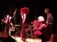 SsingSsing (Hangul: 씽씽) was a South Korean band that fuses Korean folk music with genres including glam rock, disco, and psychedelic rock.[1] The band formed in 2010,[2] and gained international attention in 2017 after performing on NPR’s Tiny Desk Concerts and at Globalfest at Webster Hall.[3][1] The band's six members include traditional singer Lee Hee-moon and music director Jang Young-gyu.[4][5] SsingSsing ended in October, 2018 and Lee Hee-moon has said "But it is a project band that has disbanded. I loved being a part of it, but as of now, I do not have a plan to do it again."[6]