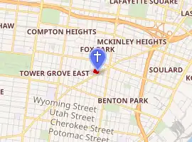 St. Francis de Sales parish was formed in 1867 to serve a growing German Catholic community,[2] whose members, at that time, were attending the church of Saints Peter and Paul in Soulard. The cornerstone was laid on September 15, 1867. During the ceremony a stand collapsed due to vandals having sawed some of the supporting timbers the previous night. No one was seriously injured. Although the church was still under construction, the first Mass was celebrated that Christmas. The building was dedicated the following May, by which time the church had 800 members. It is dedicated in honor of Saint Francis de Sales (d. 1622), bishop and doctor of the Church. The parish developed schools on its campus for Catholic children of elementary and high school levels. For many years the sermon at Holy Mass was given in German, and classes at the school were conducted in German.[3]
