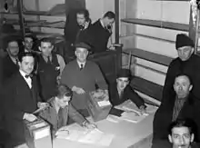 Counting the ballots in the 1938 by-election in the riding of St. Henri; Camillien Houde, running for the Conservatives, lost to Joseph Arsène Bonnier for the Liberals.