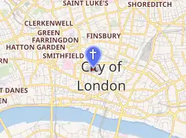 St Alban's was a church in Wood Street, City of London. It was dedicated to Saint Alban. Of medieval origin, it was rebuilt in 1634, destroyed in the Great Fire of London in 1666,[1] and rebuilt, this time to a Gothic design by Sir Christopher Wren. It was severely damaged by bombing during the Second World War and the ruins cleared, leaving only the tower.[2]