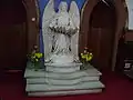 There is also a lovely font of a white marble angel holding a large shell, by S, Ruddock, London the monument, dedicated to Horsfall's daughter, Mrs Mary Simms[8] upon whom the face of the angel is believed to be modelled on.