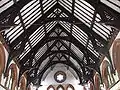 Inside, a set of excellent stained glass windows.[8] being of good-quality, intact and an extensive scheme of stained glass, designed by Hardman & Co.[6] who were also responsible for the stained glass in the Houses of Parliament. Those in the North aisle are illuminated allowing them to be viewed despite them having no natural light being enclosed as a security measure. The restoration was made possible by a donation from a late parishioner and the windows blessed at Easter 2010 with the following words; Almighty and eternal God, we give you thanks and praise for these stained glass images of your saints. For as often as we look on these images with our bodily eyes, As we look at them may we consider the actions of your saints and think about their sanctity for our inmitation. Bless and sanctify these windows made in honour and in memory of your only begotten Son, our Lord Jesus Christ and of these saints. We also remember our faithful servant John Ellison in whose memory these lights were re-installed. May the light of Christ always shine in our hearts. Amen[14]