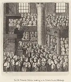 From 1758 to 1800, Hugh Blair, a leading figure of the Scottish Enlightenment and religious moderate, served as minister of the High Kirk; his sermons were famous throughout Britain and attracted Robert Burns and Samuel Johnson to the church. Blair's contemporary, Alexander Webster, was a leading evangelical who, from his pulpit in the Tolbooth Kirk, expounded strict Calvinist doctrine.[134][135]