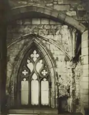In 1322 during the First Scottish War of Independence, troops of Edward II of England despoiled Holyrood Abbey and may have attacked St Giles' as well.[45] Jean Froissart records that, in 1384, Scottish knights and barons met secretly with French envoys in St Giles' and, against the wishes of Robert II, planned a raid into the northern counties of England.[46] Though the raid was a success, Richard II of England took retribution on the Scottish borders and Edinburgh in August 1385 and St Giles' was burned. The scorch marks were reportedly still visible on the pillars of the crossing in the 19th century.[47]