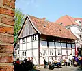 Half-timbered house, built about 1750, brick building, built in 1874