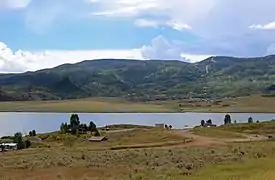 Stagecoach State Park is a Colorado State Park located in Routt County 17 miles (27 km) south of Steamboat Springs, Colorado. The 1,641-acre (6.64 km2) park established in 1989 includes a 771-acre (3.12 km2) reservoir on the Yampa River formed by Stagecoach Dam. Facilities include a marina, boat ramps, campsites, picnic sites and 8 miles (13 km) of trails. Park uplands are montane shrub communities, with riparian areas and wetlands around the reservoir and along the river. Commonly sighted wildlife includes elk, mule deer, coyote, red fox and badger.