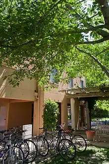 Graduate housing consists of Escondido Village, Rains Houses, Kennedy Graduate Residences, Munger Graduate Residences, GSB (Graduate School of Business) Residences on East Campus and the Lyman Graduate Residences on West Campus. Students with children live in family courtyards among the Escondido Village low-rises. Due to the difficulty of finding reasonably priced off-campus housing and shortage of on-campus housing, Stanford has also leased a large number of off-campus apartments and subleases them to graduate students.[2] By 2020/2021 new buildings in the Escondido Village area will have been constructed for a net gain of 2,000 beds.[3][4][5]