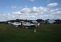 Stanley was built as RCAF Station Stanley in March 1941 to train pilots as part of the British Commonwealth Air Training Plan. The airport was the base for the Royal Canadian Air Force's No. 17 Elementary Flying School which trained thousands of pilots for the Second World War.[2] The school operated a number of Fleet Finch II Model 16B aircraft from 1941 through 1944.,[3] and two dozen de Havilland Tiger Moth aircraft to train pilots along with a Link Trainer, an early flight simulator equipped with gauges to simulate a real aircraft. At its peak Stanley trained four 30-student classes simultaneously for six weeks of flight training before graduates passed on to advanced training at other bases.[4] The station was closed in January 1944 as the war came to a close.
