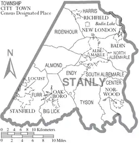 Stanly County comprises the Albemarle, NC Micropolitan Statistical Area, which is also included in the Charlotte-Concord, NC-South Carolina Combined Statistical Area.