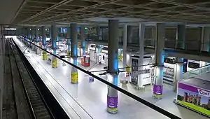The station is in a concrete box structure that is unusually above ground level rather than below ground, being constructed under the terminal building. This is evident at the western end of the platforms which are left open and is a similar design to Wembley Central railway station.