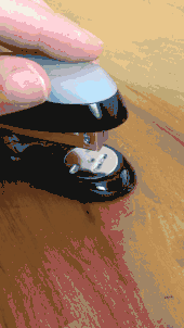 When stapling with a stapler the papers to be fastened are placed between the main body and the anvil. The papers are pinched between the body and the anvil, then a drive blade pushes on the crown of the staple on the end of the staple strip. The staple breaks from the end of the strip and the legs of the staple are forced through the paper. As the legs hit the grooves in the anvil they are bent to hold the pages together. Many staplers have an anvil in the form of a "pinning" or "stapling" switch. This allows a choice between bending in or out. The outward bent staples are easier to remove and are for temporary fastening or "pinning".