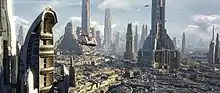 On June 11, 2010, at the "What's Next?" presentation, Disney announced that the re-imagined attraction would take place between Revenge of the Sith and Star Wars – Episode IV: A New Hope and would be named Star Tours – The Adventures Continue. They also premiered an image showcasing the StarSpeeder 1000 flying through Coruscant.[14]