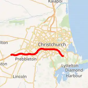 State Highway 76 (SH 76) is a state highway in Christchurch, New Zealand. This highway was gazetted in 2012 after stage 1 of the Christchurch Southern Motorway was completed. Beforehand, much of SH 76 was part of SH 73 and included the former two-lane Christchurch Arterial Motorway, which was upgraded to four lanes. SH 76 includes the entire length of the Christchurch Southern Motorway and forms the most direct route from the south of Christchurch to the city centre and Lyttelton.