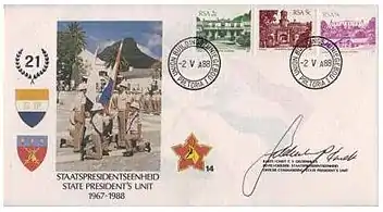 President P. W. Botha changed the name of the unit to the "State President's Unit" in 1985, and later the ceremonial uniform was changed to the regular service uniform used by the rest of the defense forces.[2]