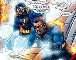 In a 2009 storyline it was recently revealed that prior to his abduction, Static teamed with Justice League member Black Lightning in order to stop former Blood Syndicate member Holocaust, who had tried to kill the superhero while he was acting as the keynote speaker at Ernest Hemingway High's senior graduation.[23]