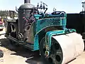 United States -built 1924 Buffalo Springfield steam roller: a vertical boiler design with tandem rolls. Note position of firebox door, facing out of frames.