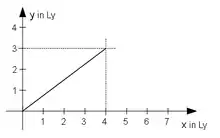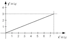 The origin of the reference frame S' is in uniform motion relative to S with , i.e. moves along the x-axis, and the x-,y- und z-axes of S' and S are parallel to each other and at time the origins of S and S' coincide. Let