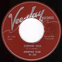 "Steppin' Out" (or sometimes "Stepping Out") is a blues-instrumental composition recorded by American blues musician Memphis Slim in 1959. It was released by Vee-Jay Records as a single and on Slim's At the Gate of the Horn album. Although both releases list L. C. Frazier (another of Memphis Slim/Peter Chatman's pseudonyms) as the writer, Vee-Jay owner James Bracken is often credited on versions by other performers.