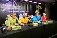 Steven Novella (middle) on podcast panel at TAM 13. His brother Jay appears second from right.