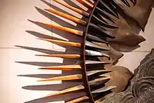 One of Sykes's best-known work is the Gethsemane Chapel mosaic in The Cathedral of St Michael, Coventry.[15][16][17] Sykes was invited to contribute to the cathedral by its architect, Basil Spence, who had himself also been a camouflage officer during the war.[18] The figure of the "consciously Byzantine" angel,[19] St Michael, and Jesus's disciples asleep at Gethsemane are modelled like his pottery figures in reverse relief, but then cast in concrete. The background is covered in gold leaf and blue tesserae, forming a mosaic. According to Tanya Harrod in The Independent, "The result was dazzling."[1]