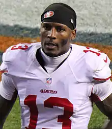 Steven John Johnson Jr.[1] (born July 22, 1986) is a former American football wide receiver. Johnson was drafted by the Buffalo Bills in the seventh round of the 2008 NFL Draft and has also played for the San Francisco 49ers and San Diego Chargers. He played college football at Kentucky. Despite never making the Pro Bowl, Johnson was the first Bills receiver to post back-to-back seasons with over 1,000 yards receiving, and has been considered one of the best draft steals in franchise history.[2]