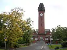 During the First World War, the building was requisitioned by the War Office to create the 3rd and 4th Scottish General Hospitals, facilities for the Royal Army Medical Corps to treat military casualties.[4] Wounded servicemen arrived by specially converted hospital trains that terminated at a temporary railway platform built within the hospital grounds.[5] A staff of 240 TF nurses as well as volunteers from the St. Andrew's Ambulance Association cared for over 1,000 patients at a time, suffering from battlefield wounds to venereal disease, until the return of the hospital to civilian use in early 1920.[6]