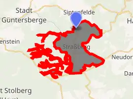 Straßberg is a village and a former municipality in the district of Harz, Saxony-Anhalt, Germany. Since 1 August 2009, it is part of the town Harzgerode. Straßberg is located in southeastern part of the Harz mountains, 20 km south of Quedlinburg, 22 km northeast of Nordhausen and 23 km northwest of Sangerhausen.