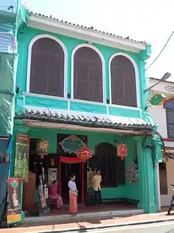 The Straits Chinese Jewellery Museum (Malay: Muzium Perhiasan Cina Selat; Chinese: 海峡华人珠宝博物馆) is a museum in Melaka City, Melaka, Malaysia.[2][3][4][5][6][7] This unique museum stands out with its aquamarine walls and traditional architecture used to be someone's home – a Peranakan family.[8]