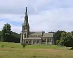 St Mary's Church was one of two, late Victorian, memorial churches in Yorkshire, built by the family of the First Marquess of Ripon in memory of Frederick Grantham Vyner. The other is the Church of Christ the Consoler at Skelton-on-Ure, and the architect of both was William Burges. Vyner was murdered by Greek bandits in 1870 and his mother, Lady Mary Vyner, and sister, Lady Ripon, used the unspent ransom, gathered to obtain his release, to build two churches in Vyner's memory on their respective Yorkshire estates. Burges' appointment as architect was most likely due to the connection between his greatest patron, John Crichton-Stuart, 3rd Marquess of Bute and Vyner, who had been friends at Oxford. St Mary's, on Lady Ripon's estate at Studley Royal, was commissioned in 1870 and work began in 1871. The church was consecrated in 1878. As at Skelton, Burges' design demonstrates a move from his favoured Early-French, to an English style. Pevsner writes of "a Victorian shrine, a dream of Early English glory." The interior is spectacular, exceeding Skelton in richness and majesty. The stained glass is of particularly high quality. St Mary's is Burges' "ecclesiastical masterpiece."[4]